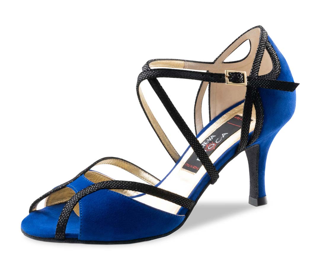 Elegantní taneční obuv Nueva Epoca od Werner Kern v půvabné indigově modré barvě. Rafinované průřezy v patě a v oblasti nártu dodávají botě vzdušnost a dynamický vzhled. Individuálně nastavitelný zkřížený pásek zajišťuje optimální stabilitu a komfort.