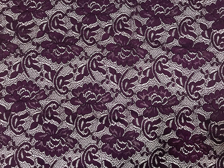 El. krajka Flower, Plum, š. 165 cm, 95% PA, 5% LY