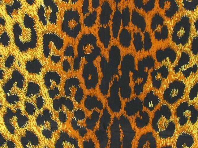 Leopard Print Satin black on Saffron , 100%PES