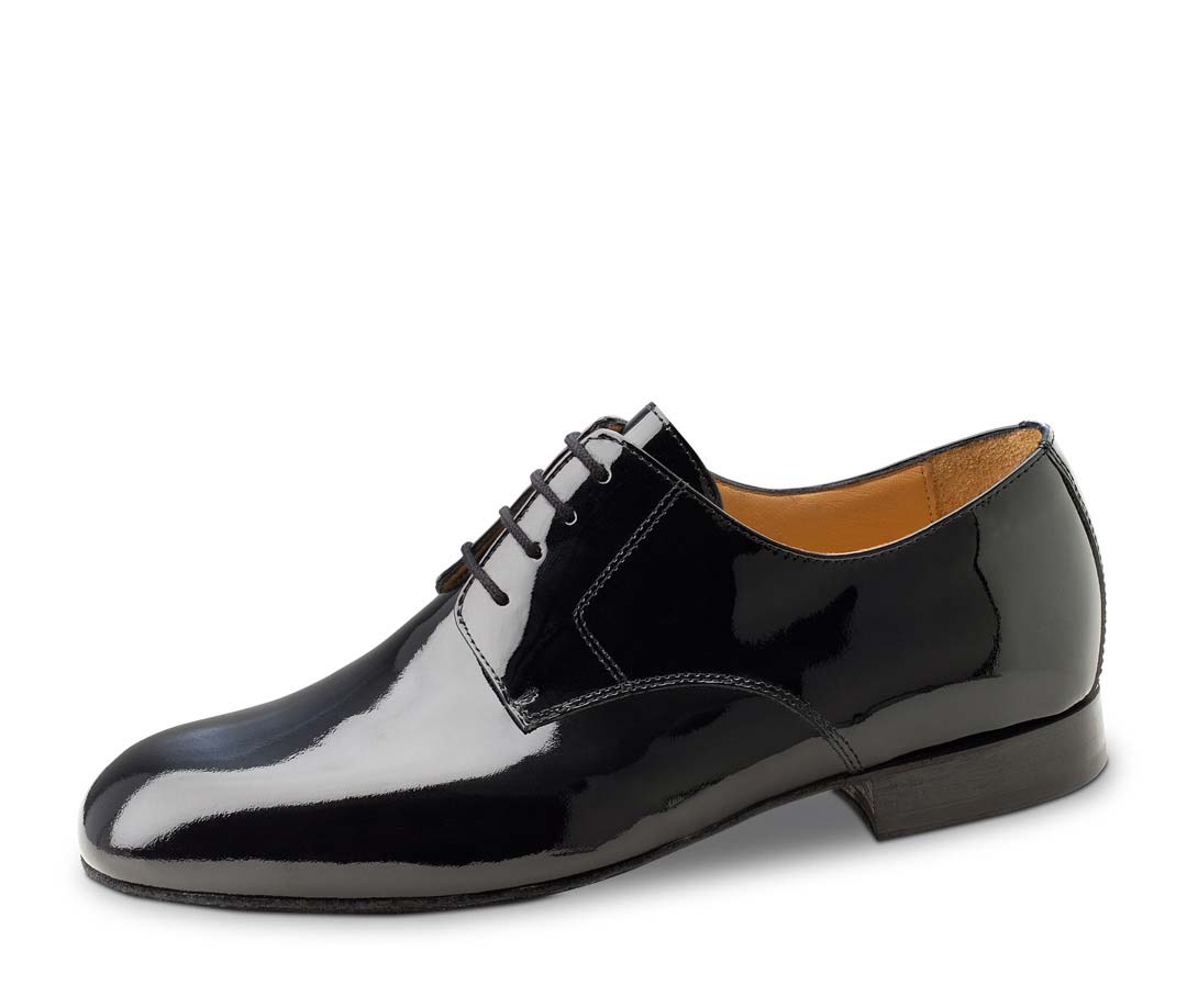 Pohodlná klasická pánská taneční bota Werner Kern s nastavitelným 4-dírkovým šněrováním. Model je obzvláště vhodný pro široká chodidla. Bota je podšitá měkkou telecí kůží v kvalitě rukavic.