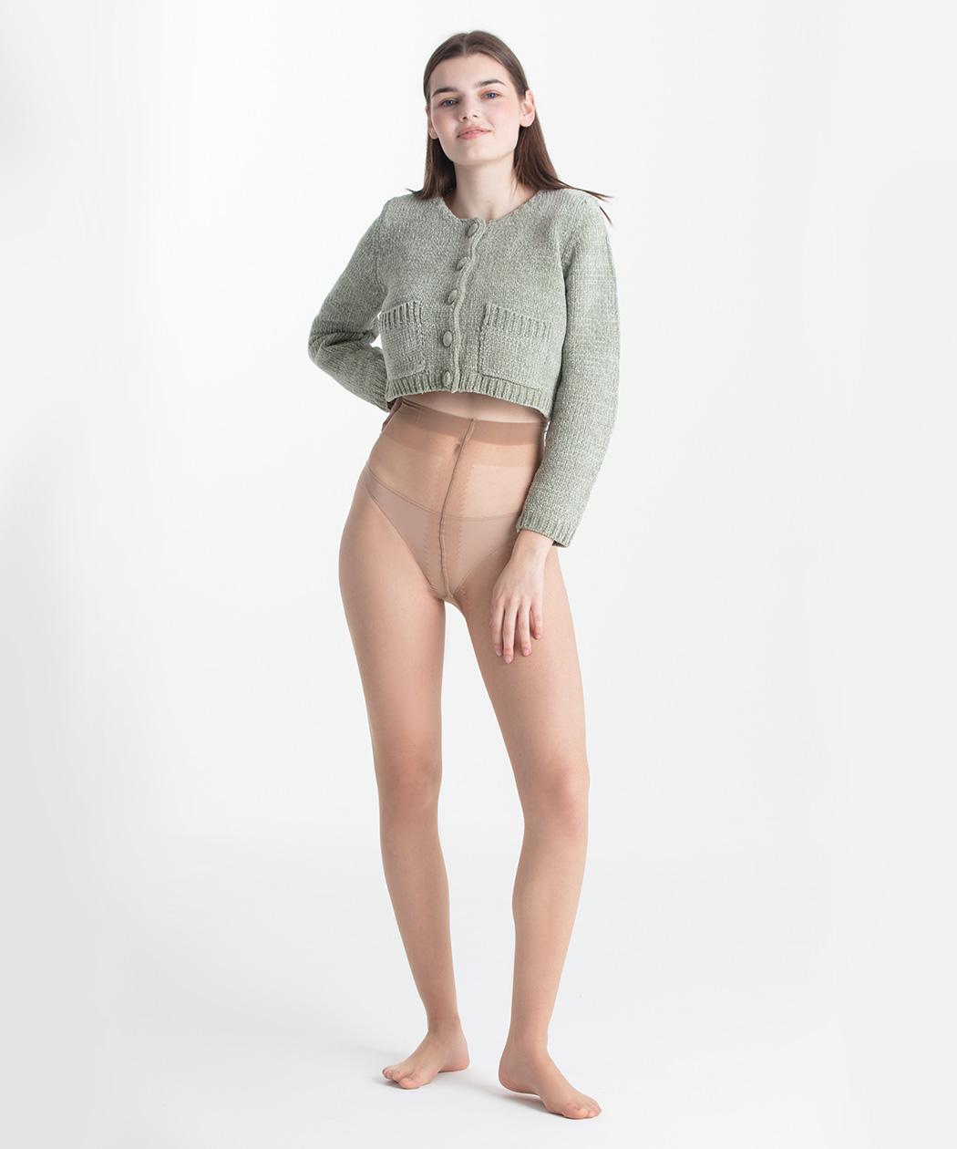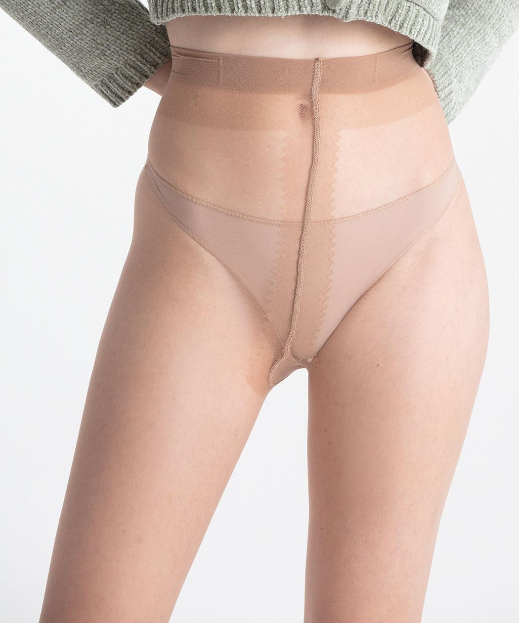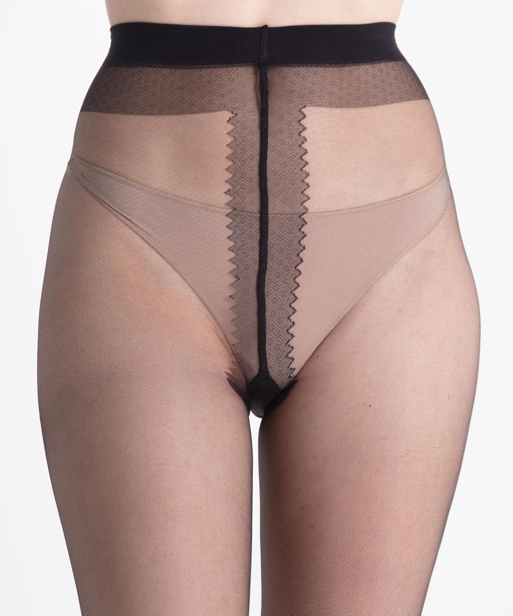 - Zesílená část kolem švů v kalhotkové části: Diskrétně zesílený prostřední šev ve stylu T-band zajišťuje funkčnost a podporu, aniž by narušoval jemnost a lehkost silonek.