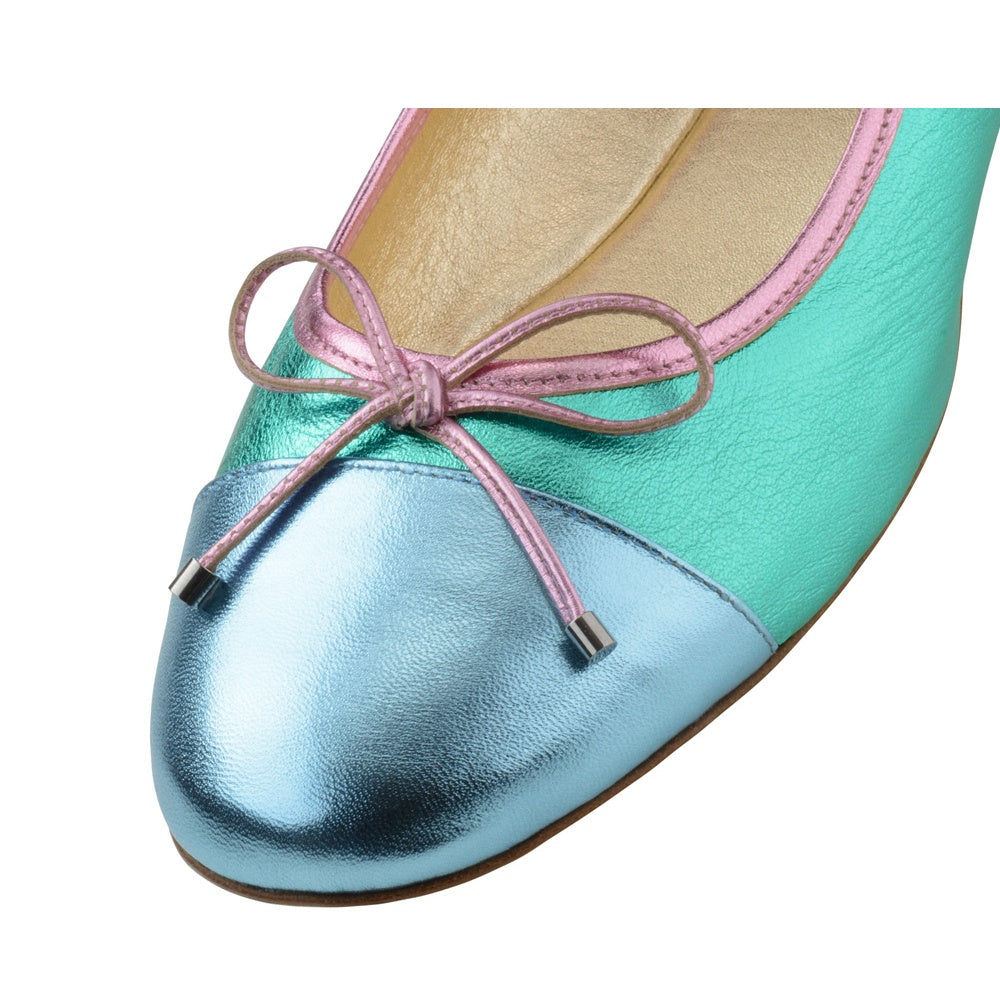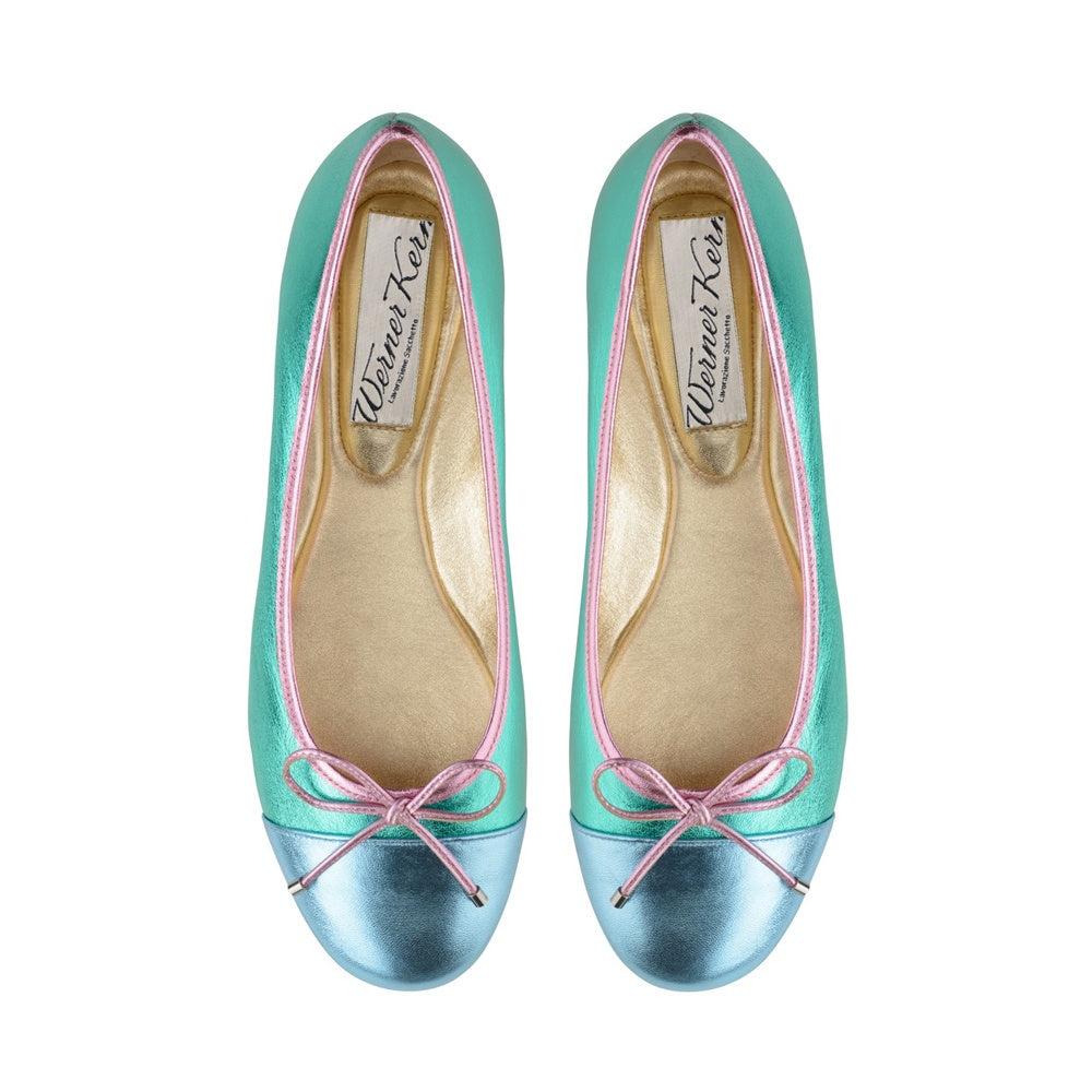 Tento pohádkový design je nezbytný pro jemný jarní vzhled. Pastelově zbarvené baleríny byly ručně vyrobeny z rukavičkově měkké laminované nappa kůže nedaleko Florencie. Filigránská mašlička a výrazné lemování v barvě rosé dokonale doplňují tento pár. Speciálně polstrovaná kožená podšívka a extrémně flexibilní kožená podrážka zaručují, že vaše nohy jsou po celý den obepnuty jako v měkké rukavici pro optimální pohodlí. Kombinujte tento model s vašimi oblíbenými jarními outfity.