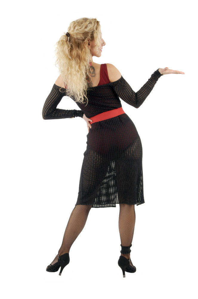 HD Šaty latinské efektní síťka, dlouhý rukáv