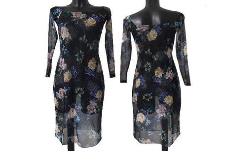HD Šaty latinské efektní síťka, dlouhý rukáv