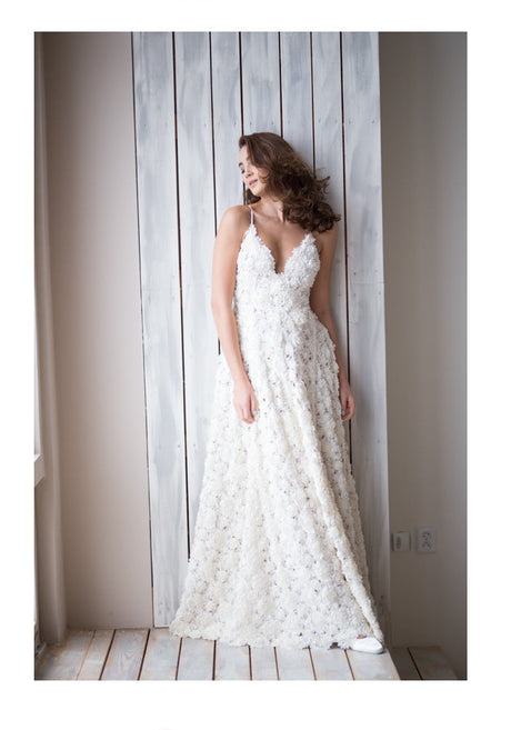 HD Dámské šaty svatební s 3D růžičkami