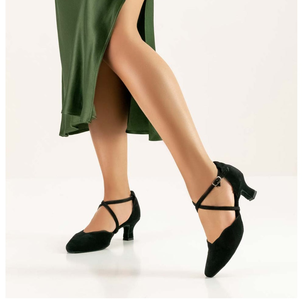 Velmi elegantní a pohodlná taneční obuv od Anna Kern s jemně zakřivenou filigránskou přední částí. Bota má individuálně nastavitelné extravagantní zkřížené pásky přes nárt a kolem paty, které zajišťují dokonalé a mimořádně pohodlné přizpůsobení noze.