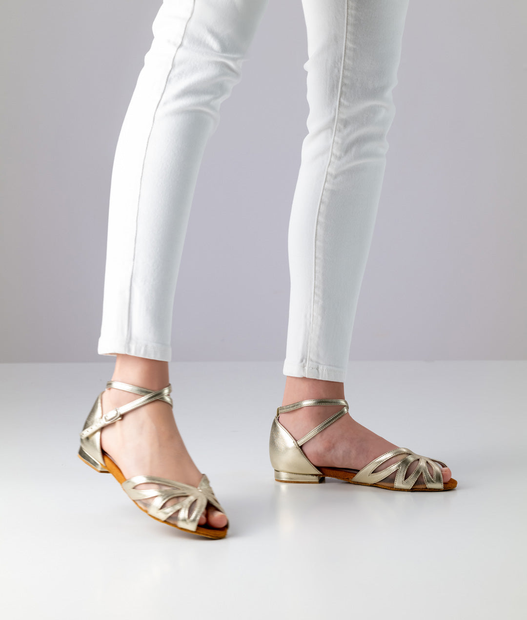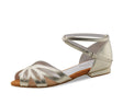Objevte dokonalé spojení luxusu a elegance s tanečními sandály Margo od Anna Kern. Tyto okouzlující ploché sandály v nádherné zlaté barvě jsou vyrobeny z kvalitní nappa kůže s rafinovanými síťovými detaily, které dodávají botám lehkost a dechberoucí vzhled. Jemné pásky objímají vaší nohu a poskytují bezpečné a pohodlné držení při každém tanečním kroku.