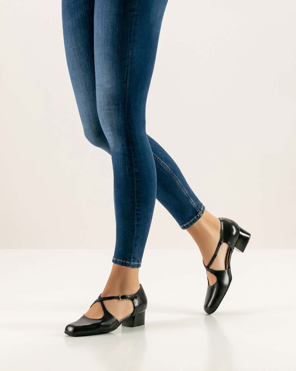 Elegantní a mimořádně pohodlná taneční obuv Werner Kern. Páska přes patu poskytuje stabilní posazení na noze - vnější páska je individuálně nastavitelná, vnitřní páska se dá dokonale přizpůsobit pomocí kůží potažené elastické pásky.