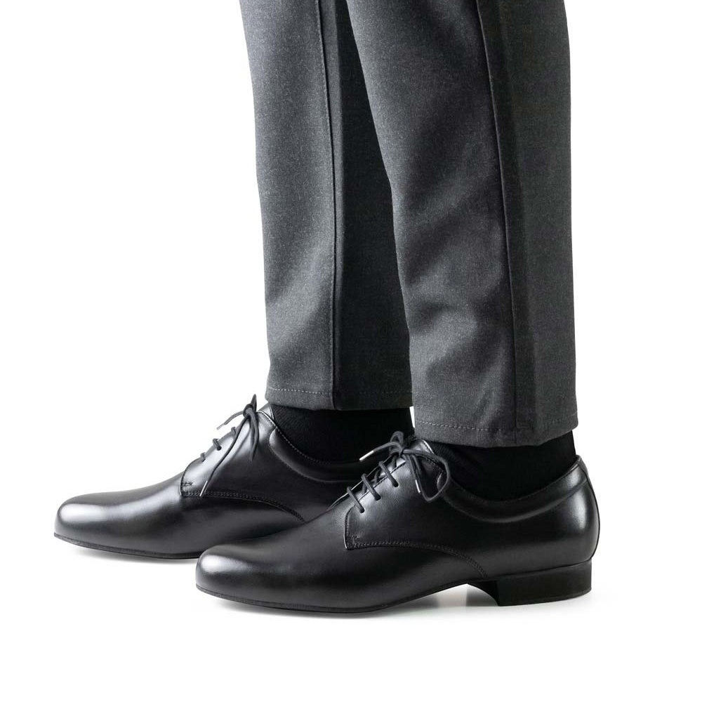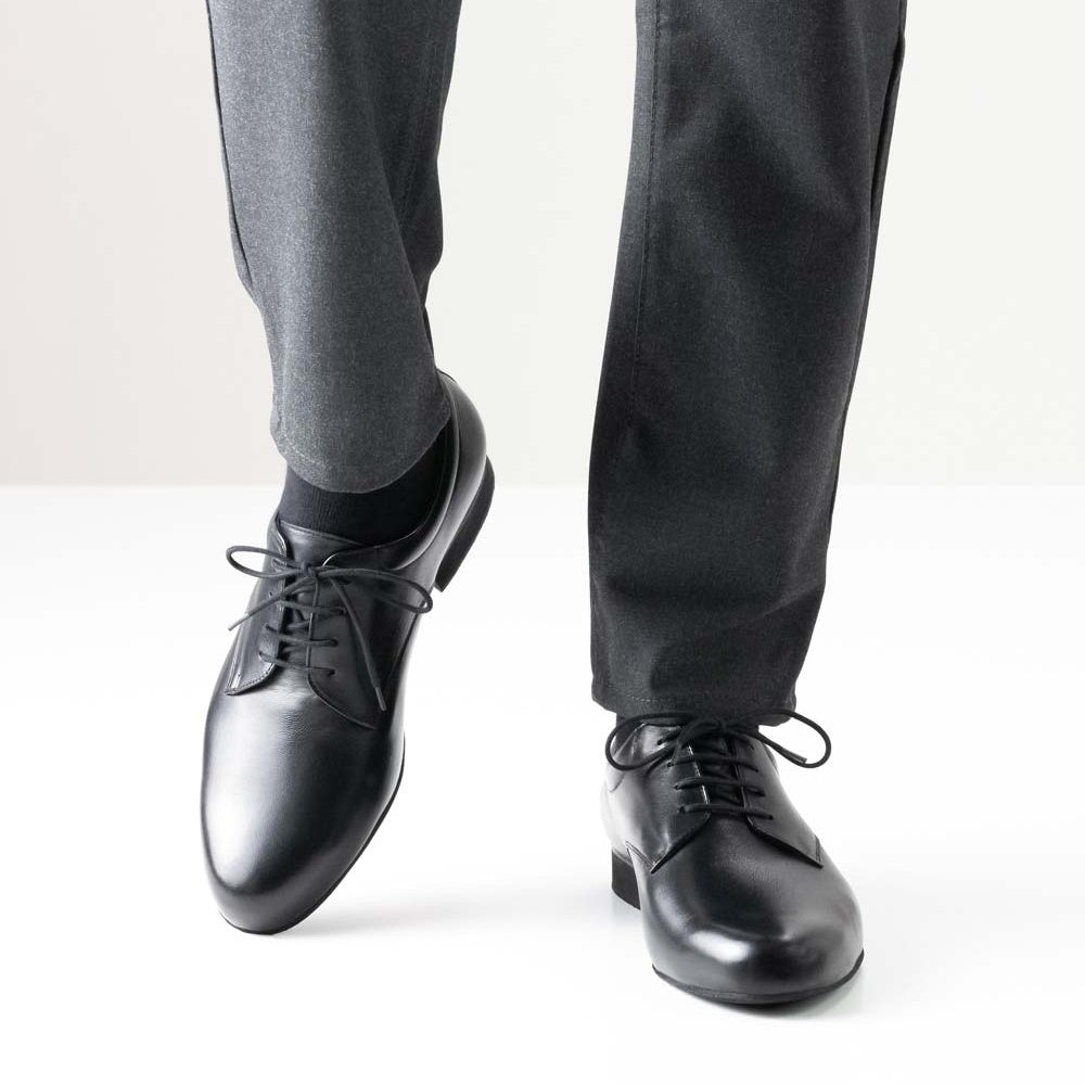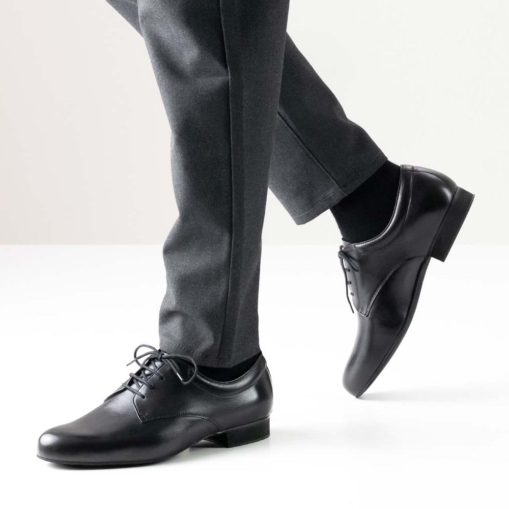 Tato klasická pánská taneční obuv nabízí výjimečné pohodlí díky nastavitelnému šněrování se 4 otvory. Oblast paty je vybavena měkkým polštářkem potaženým kůží, a tak při tanci bezpečně drží na noze.
