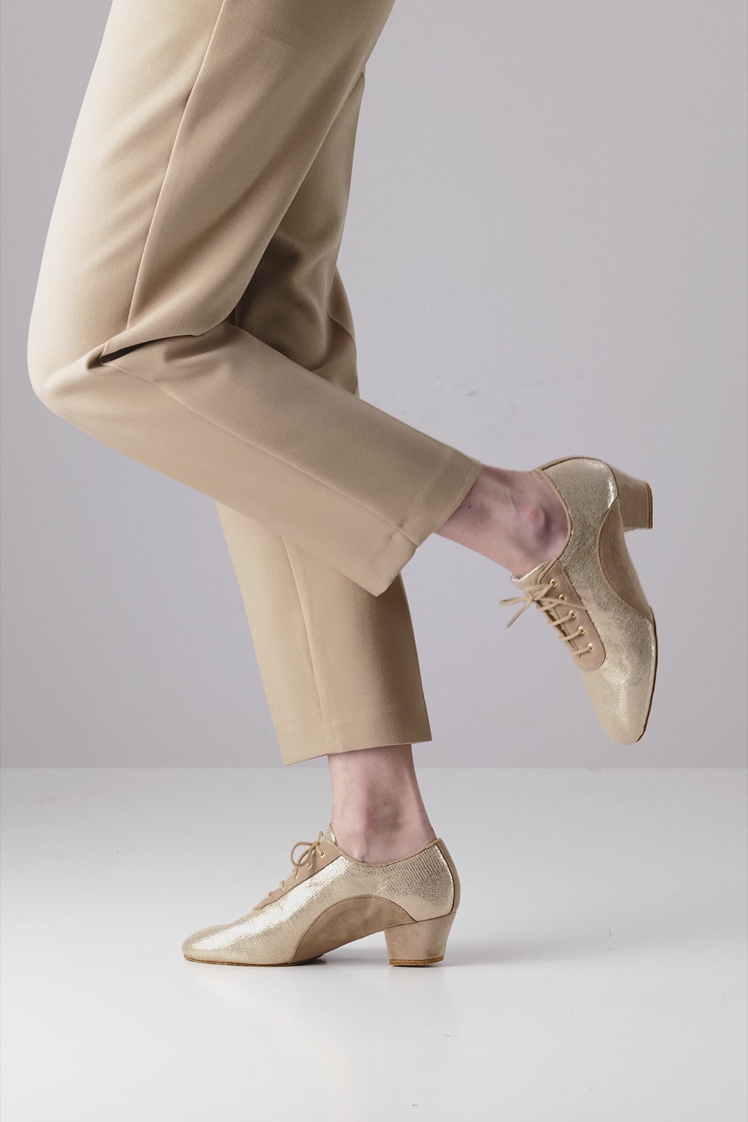 Trenérská obuv Sandrine od Anna Kern nastavuje nové měřítko elegance a funkčnosti. Tyto taneční tenisky v černém semiši s třpytivými detaily spojují moderní styl s mimořádným pohodlím. Rozdělená podrážka zajišťuje maximální flexibilitu, což je ideální pro náročné tréninky. Šněrování s pěti otvory poskytuje perfektní oporu a stabilitu.
