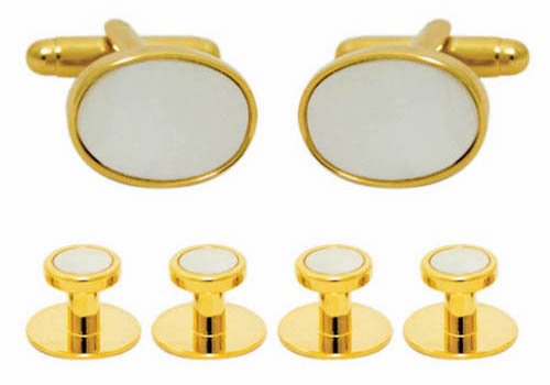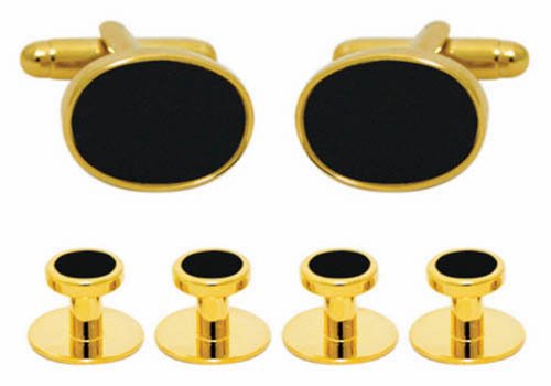 Luxury cufflinks and stud set in gold trim