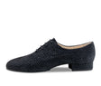 Runa je elegantní tréninková obuv s rozdělenou podrážkou, speciálně navržená pro náročné technické tréninky a dlouhé hodiny tance. Nízký podpatek výšky 1,5 cm poskytuje stabilní kontakt s podlahou – ideální základ pro precizní pohyby. Svršek z černého brokátu s jemnými modrými třpytkami dodává botě sofistikovaný vzhled a krásně obepíná chodidlo. Rozdělená podrážka umožňuje maximální volnost pohybu, zatímco prémiová kožená podšívka zajišťuje prodyšnost a příjemný komfort po celý den.