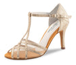Třpytivá taneční obuv Anna Kern vyrobená z brokátu. Souhra propletených řemínků a průhledných síťovaných aplikací vytváří vzdušně lehký vzhled.
