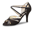 Půvabné taneční střevíčky Nueva Epoca od značky Werner Kern, které okamžitě upoutají pozornost. Elegantní obloukové linie na přední části boty jsou ozdobným prvkem, který dodává modelu hravý a zároveň sofistikovaný charakter. Individuálně nastavitelné kotníkové pásky pak zajišťují stabilní, pohodlné a dokonale přizpůsobené přilnutí k noze. Na tanečním parketu tak dávají pocit jistoty každému Vašemu kroku .